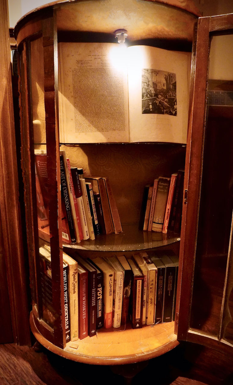 酒類やカクテルにまつわる今では入手困難なレアな古書などを陳列している書棚